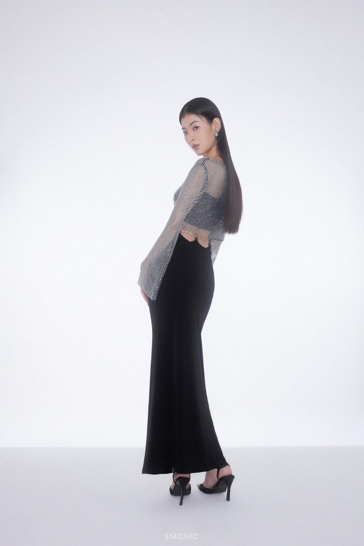 This striking Rhinestone-embellished Set is perfect for any special occasion. Crafted with a luxuriously soft cotton top and featuring a sparkling rhinestone-embellished net top outside, you'll look beautiful and elegant at your next night out or event. The long cotton skirt adds a modern touch that will stand out from the crowd. Step up your style game with this beautiful black set.